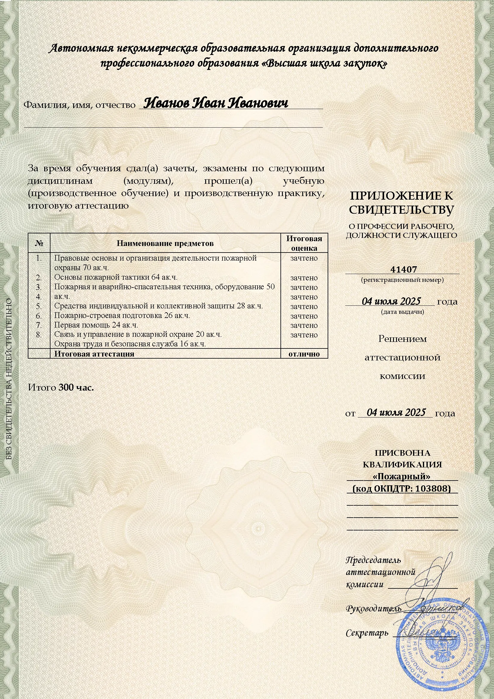 Профессиональное обучение, 300 академических часов, 8 модулей: законодательство и нормативные акты в области пожарной безопасности, тактика тушения пожаров и проведение аварийно-спасательных работ, устройство и использование пожарно-технического вооружения, оказание первой помощи. Онлайн-обучение в в Воронеже с итоговой аттестацией.