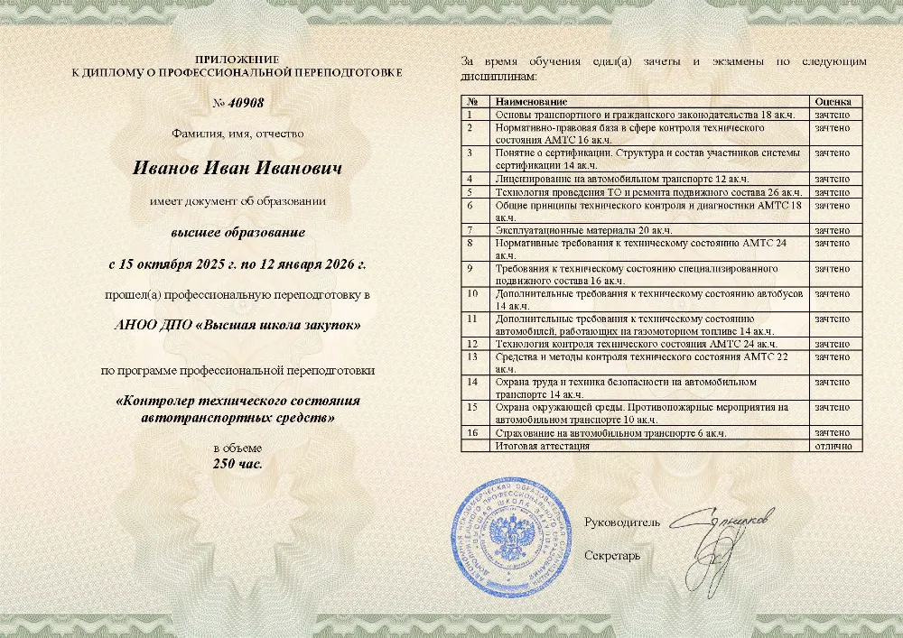 Профессиональная переподготовка, 250 академических часов, 7 модуля: нормативно-правовые основы и технологии контроля, охрана труда, экологии и требования к техническому состоянию транспортных средств. Онлайн-обучение в в Воронеже с итоговой аттестацией.